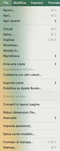 Quando hai il documento aperto su tuo Mac ti basterà cliccare in alto a sinistra su “File”. Ti comparirà questa schermata.