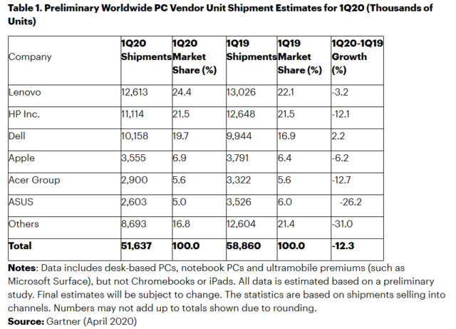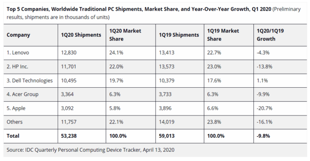 ia IDC che Gartner sono concordi nell’evidenziare l’impatto estremamente negativo avuto dal blocco della produzione in Cina, una misura che si è resa necessaria per annullare la proliferazione incontrollata del virus SARS-CoV-2 ma che ha portato alla disponibilità sul mercato di un numero di PC inferiori alla domanda. Gli effetti del COVID-19 sul medio-lungo periodo sono ancora da valutare, ma le società di analisi già prevedono che la richiesta di nuovo hardware informatico dovrebbe calmierarsi nel prossimo futuro.