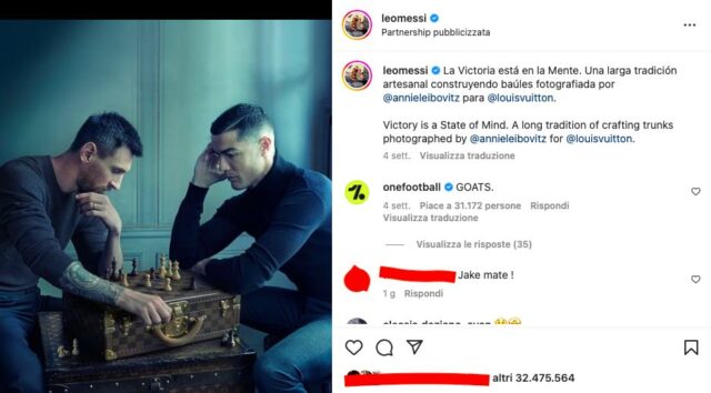 La foto in questione, come potete vedere, è legata alla campagna Louis Vuitton insieme allo storico rivale, Cristiano Ronaldo.