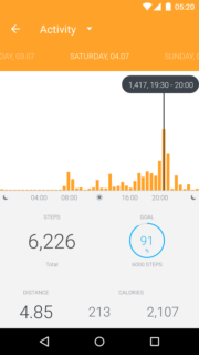 Ho provato lo Steel per un paio di settimane confrontandolo con un activity tracker Jawbone e con il Garmin Fenix 3 dotato di Gps. Devo dire che i risultati sono molto buoni, soprattutto se sono stati impostati i dati personali corretti (altezza e peso in particolare). Complessivamente registra una distanza percorsa un po’ inferiore rispetto alla realtà , ma l’errore è quasi trascurabile e, secondo me, è uno sprono a fare di più.