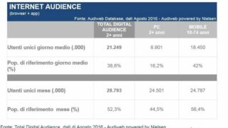 A riferirlo è Audiweb Database, e stando ai suoi nuovi dati nel mese di agosto la popolazione italiana su Internet ha raggiunto i 28,8 milioni di utenti unici. Nel giorno medio di questo mese estivo è stata raggiunta quota i 21,3 milioni di italiani online da computer, smartphone e tablet. Rispettivamente: hanno navigato da dispositivi mobili 18,5 milioni di italiani (in un’età compresa tra i 18-74 anni) e 8,9 milioni da computer (italiani dai 2 anni in su).