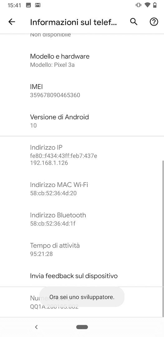 Per avere una maggiore certezza, sugli smartphone Android potete verificare quale sia il codec audio in uso, ma per fare ciò dovete abilitare la scheda della Opzioni sviluppatore. Per fare questo dovete entrare nel menu Impostazioni e successivamente nella scheda Informazioni sul telefono fino a trovare la riga che indica la Build number.