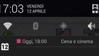 Premendo sull’Evento si accede poi al corrispondente dettaglio all’interno di Calendario. L’App è appena stata pubblicata ed è in fase di beta: è quindi molto semplice, utile, ma decisamente scarna nelle opzioni. Per chi ha tanti appuntamenti in calendario oppure diversi calendari sincronizzati, c’è il rischio che la barra delle notifiche diventi troppo affollata. Tuttavia lo sviluppatore propone agli utenti di consigliare le nuove opzioni sulla pagina di Google Plus: consigliamo senza dubbio di votare per la possibilità di decidere quali calendari visualizzare nella barra.