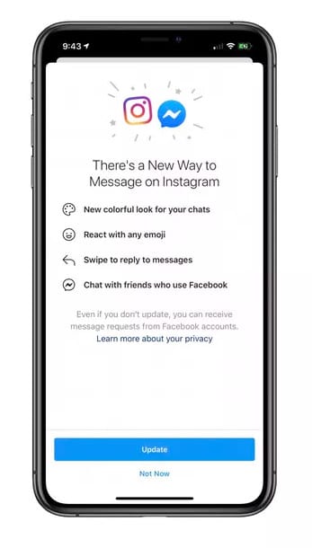 Mark Zuckerberg aveva confermato la creazione di una piattaforma unificata che dovrebbe offrire una maggiore protezione per le conversazioni private. Alcuni utenti statunitensi hanno notato la comparsa di un popoup nell’app Instagram che preannuncia l’inizio dell’integrazione con Facebook Messenger. Il piano che prevede la “fusione” dei servizi (anche WhatsApp) era stato annunciato circa un anno fa.
