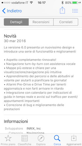 INRIX era già presente nel settore degli smartphone iOS e Android con una applicazione dedicata al traffico, ma la nuova app integra grandi aggiornamenti e il più importante è quello relativo alla navigazione assistita turn-by-turn. A differenza di Waze che si basa sulla condivisione delle informazioni da parte degli utenti dell’app, INRIX sfrutta i dati contenuti nel proprio database – lo stesso impiegato per fornire i dati ai navigatori integrati sulle autovetture – che sono forniti da oltre 275 milioni di auto e dispositivi sparsi su scala globale.