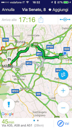 Un’altra funzione estremamente interessante è riguarda l’integrazione di un sistema di apprendimento automatico: l’utente non deve inserire manualmente i tragitti preferiti o più utilizzati, ma è l’applicazione stessa a rilevare quali sono i tragitti percorsi con maggiore frequenza, le località più visitate e a fornire in appositi tab tutti i dati necessari.