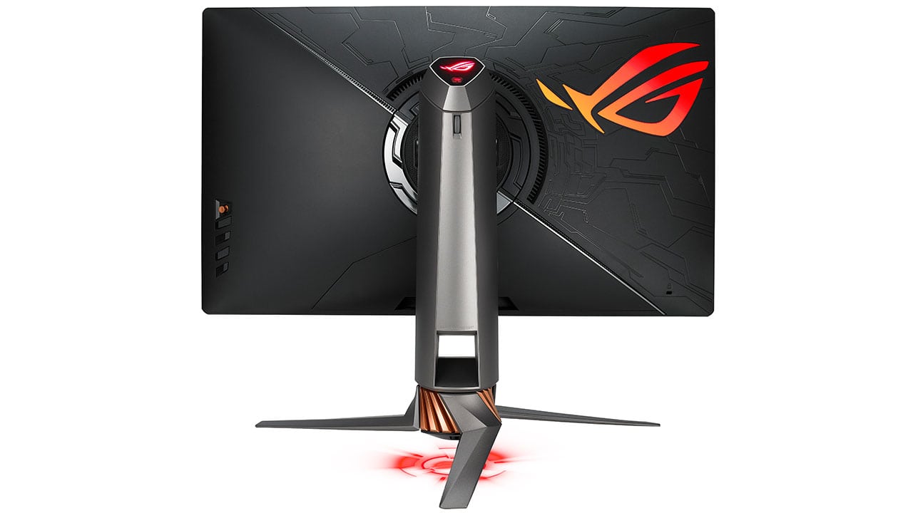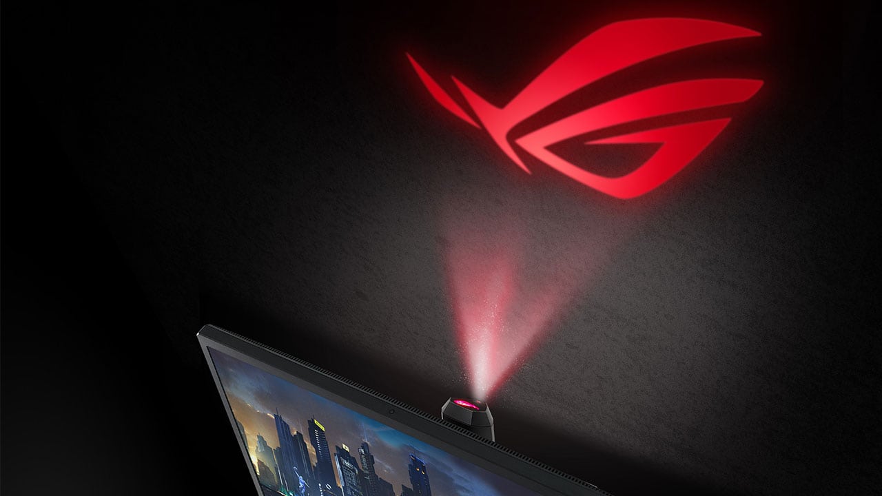 La parte tecnologica è un elemento essenziale, ma anche l’occhio vuole la sua parte e per questo Asus ha dedicato particolare attenzione anche all’estetica del PG27UQ. Il design è aggressivo come ci si aspetta da un prodotto gaming e caratterizzato da funzioni luminose come quella ROG Light Signal che proietta il logo ROG sulla scrivania, quella ROG Light Signature che proietta il logo ROG sul muro dietro al monitor e quella Aura Sync per la sincronizzazione centralizzata dei colori con altri prodotti Aura Sync. Non ci sono profili sottili in quanto Asus ritiene che questo monitor debba essere utilizzato in modalità singola: mancando hardware in grado di sfruttarlo appieno in modalità singola, sarebbe impossibile gestire più monitor al massimo con un solo sistema.