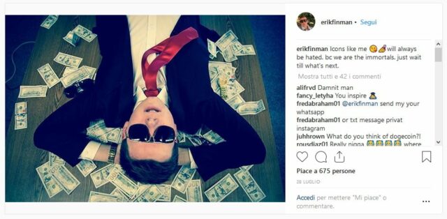 Sul lungo termine Bitcoin non ha più speranza, sostiene Finman, che dall’alto dei suoi 4 milioni ama pubblicare foto su Instagram mentre è disteso su un tavolo pieno di banconote. Dollari poco virtuali, in questo caso. Un’altra criptomoneta quasi vicina al tracollo è Litecoin, dice ancora il giovane speculatore, con una perdita di valore del 95% e un destino già segnato da tempo.