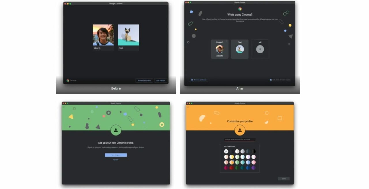 Per coloro che condividono computer o broser, la versione 89 rinnoverà la gestione dei profili di Chrome. All’apertura di Chrome apparirà una nuova schermata modernizzata per selezionare i profili da usare durante la propria sessione. Sarà disponibile anche un selettore nel menù a tendina, che appare dopo aver toccato l’immagine del proprio avatar accanto alla Omnibox.
