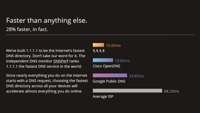 Cloudflare DNS, prestazioni