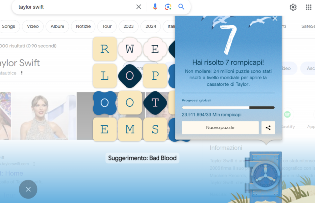 Possono partecipare a questo gioco easter egg di Google tutti i fan di Taylor Swift in giro per il mondo, per ottenere i titoli della Vault di 1989 (Taylor’s Version). In totale ci sono 33 milioni di enigmi, che gli Swifties dovranno risolvere per avere la loro risposta.