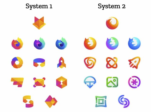 Al momento Mozilla ha progettato due “Sistemi” di icone concorrenti chiamati semplicemente “System 1” e “System 2”, e si è rivolta agli utenti per ricevere feedback e commenti sull’uno o l’altro sistema. La fondazione ci tiene in ogni caso a precisare che non è alla ricerca di design personali degli utenti, di non voler sottoporre i design concorrenti a una votazione e soprattutto di non voler chiedere a nessuno di realizzare un nuovo design senza compenso.