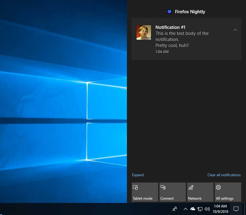 Un’altra novità in arrivo su Firefox è infine quella del supporto alle notifiche native su Windows 10, una funzionalità pensata per visualizzare le notifiche in arrivo dai siti Web per cui l’utente ha attivato una sottoscrizione direttamente nel Centro Notifiche del sistema operativo Microsoft. L’opzione è già disponibile in Firefox Nightly, dovrebbe arrivare con la versione stabile di Firefox 65 ed è facile da testare grazie a questo tool in HTML5. Gli spammer, a cui certamente farà gola la possibilità di veicolare messaggi pubblicitari direttamente a livello di OS, si staranno certamente già fregando le mani.