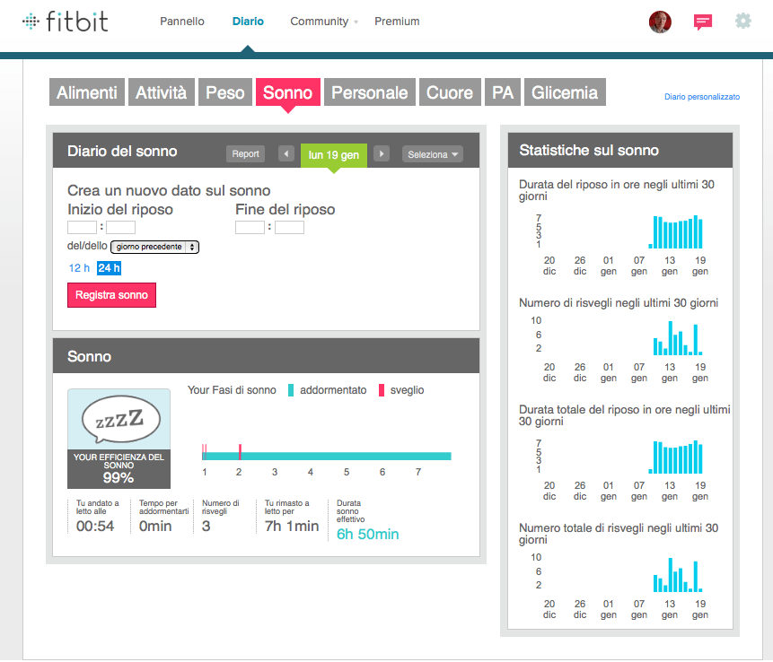 - La pagina Web con i dati del sonno