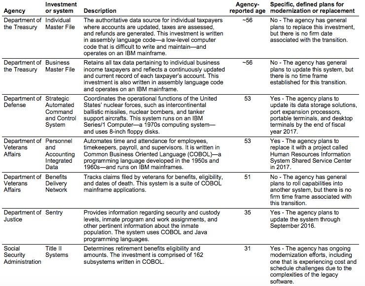 Sempre secondo quanto riportato nel documento stilato dalla GAO, il mantenimento di questi sistemi informatici ormai sorpassati sarebbero costati ai contribuenti americani circa 61,2 miliardi di dollari solo per l’anno 2015; di contro i sistemi informatici utilizzati dalle Agenzie federali sarebbero costati solo 19,2 miliardi di dollari.