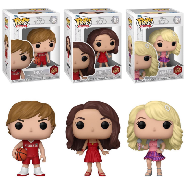 Un primo sguardo ai nuovi Funko Pop di High School Musical ci mostra come si presentano i tre personaggi Troy sfoggia la sua classica maglia da basket. Invece Gabriella è vestita con un vestito rosso e tacchi alti. Il look si abbina al suo vestito della performance più famosa del film, We’re All in This Together. Invece, Sharpay tiene in mano un microfono e indossa la camicia e la gonna sgargianti dell’interpretazione di lei e Ryan di What I’ve Been Looking For.