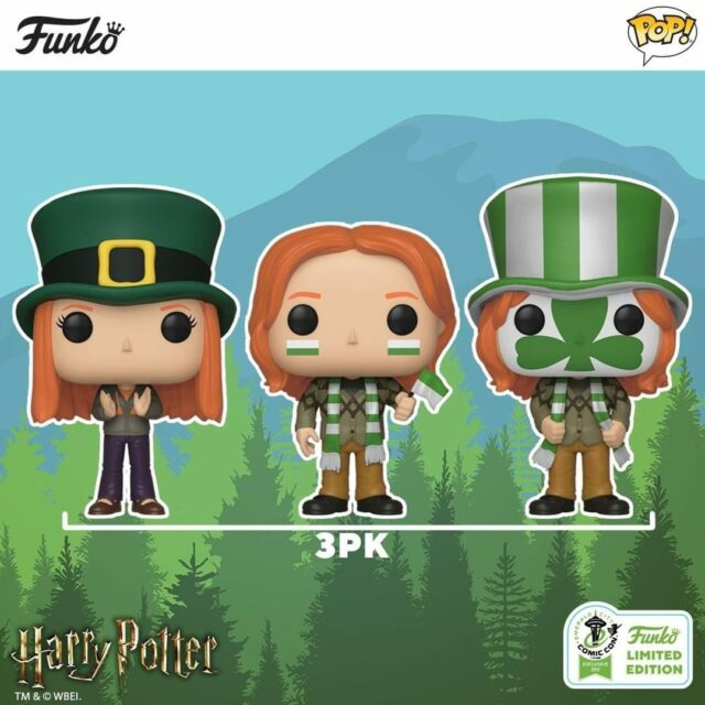 Il tri-pack di Funko Pop di Ginny, Fred e George Weasley in versioni tifosi della Coppa del Mondo di Quidditch è un’esclusiva Emerald Comic Con 2019 che sarà poi venduta da Barnes & Noble.