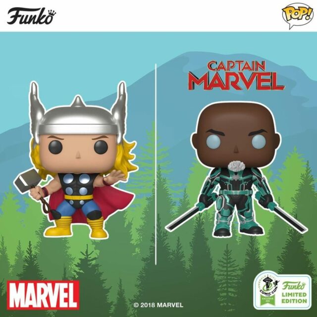 Thor e Korath, personaggio del film Captain Marvel, sono le due novità Pop del mondo Marvel. Dopo l’Emerald City Comic Con 2019 il primo uscirà per GameStop, mentre il secondo per Hot Topic.