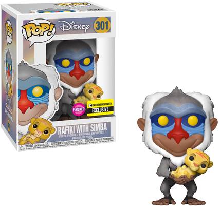 Il Funko Pop di Rafiki con Simba cucciolo, tratto dalla prima scena de Il Re Leone, ha anche una versione pelosa, esclusiva di Entertainment Earth.
