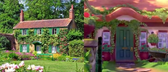 La stessa casa del personaggio principale, adornata di fiori ed edera, ricorda una casa della campagna inglese.
