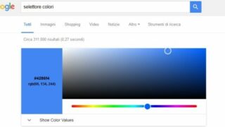 Dopo aver messo a disposizione la calcolatrice, il metronomo o il convertitore per le valute, ora, Big G ha deciso di implementare anche il selettore dei colori, una funzione che consente di visualizzare velocemente la classica tavolozza dei colori, con la possibilità di individuare il proprio colore desiderato, avendo a disposizione anche i relativi codici di identificazione.