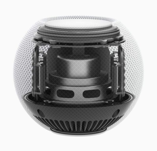 L’utente può quindi posizionare lo smart speaker in ogni punto della stanza. È possibile anche accoppiare due HomePod mini per ottenere un suono stereo (canali destro e sinistro). I quattro microfoni rilevano i comandi vocali di Siri e cancellano il rumore ambientale. Il chip Apple S5, in abbinamento al software, elabora gli algoritmi di audio computazionale per ottimizzare il volume e regolare la gamma dinamica.