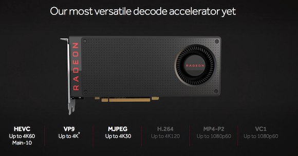 La qualità delle immagini non dipende solo dalla risoluzione, ma anche dai colori e dalle modalità con le quali il flusso video viene trasmesso verso il dispositivo destinato a riprodurle, ovvero il display. Con Polaris, Amd supporta i monitor HDR (High Dynamic Range) attraverso l’aggiornamento delle uscite video che ora sono pronte e compatibili con gli standard Displayport 1.3 HBR3, Displayport 1.4 HDR e Hdmi 2.0b, tutte compatibili con lo standard di protezione dei contenuti HDCP 2.2.