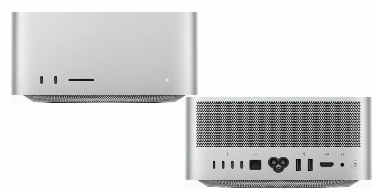 Anche in termini di connettività Mac Studio non ha rivali, con una sfilza di porte e accessi per tutti i tipi di strumenti possibili. Si contano 4 entrate Thunderbolt, 1 ethernet a 10 gigabit, 2 USB-A, 1 HDMI e un jack audio da 3.5 mm. Invece sulla parte anteriore troviamo 2 USB-C per la versione con M1 Max e 2 Thunderbolt 4 per M1 Ultra, 1 slot SDXC card.