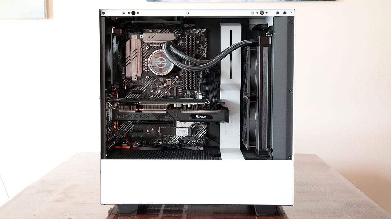 Processore: Intel Core i7 10700K ■ Raffreddamento: kit a liquido AIO FrostFlow 240 Serie RGB ■ Scheda madre: Asus Prime Z490P ■ Memoria: 4 x 4 Gbyte Corsair Vengeance 3.000 MHz ■ Scheda grafica: Palit GeForce RTX 2070 Super ■ Disco: SSD M.2 NVMe da 1 Tbyte ■ Alimentatore: Corsair TX 650 watt ■ Telaio: NZXT H510 bianco ■ Sistema operativo: Microsoft Windows 10 Home 64 bit ■ Software: BullGuard Internet Security (90 giorni di prova)
