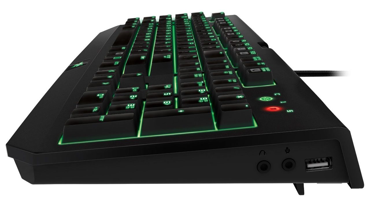 Il telaio di questa tastiera è realizzato in materiale plastico di elevata qualità e sebbene non siano presenti parti in metallo questo prodotto è molto robusto e con un peso sufficiente a restare stabile sul piano di gioco. Non è presente un vero poggiapolsi, ma grazie all’inclinazione del piano di battuta la scrittura risulta comunque molto comoda.