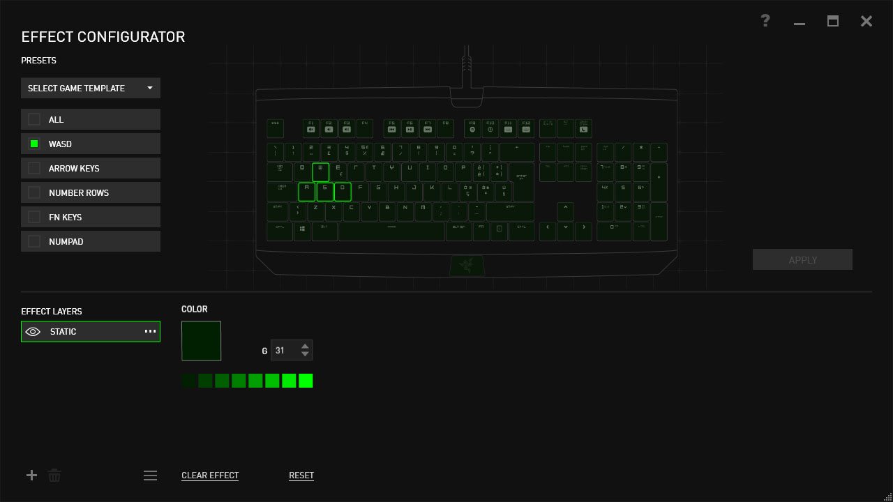 Il software Synapse permette anche di registrare e visualizzare le statistiche di utilizzo dei tasti, così da avere informazioni utili per affinare la programmazione e l’accessibilità alle macro. L’illuminazione è controllata in modo indipendente per ogni singolo tasto e permette di evidenziare, ad esempio, i tasti di maggiore utilizzo per renderli maggiormente visibili rispetto agli altri.