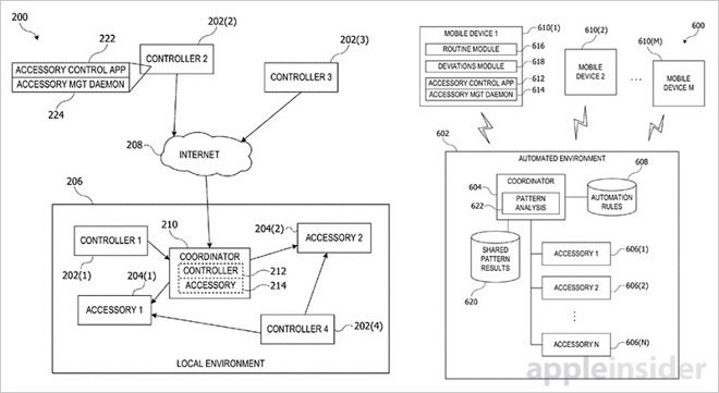 Apple ha depositato un nuovo brevetto – a questo link trovate il testo integrale del documento – presso l’ufficio americano Patent and Trademark intitolato Aggregating user routines in an automated environment e con lo scopo di inserire all’interno del framework HomeKit funzioni che permetterebbero ai diversi dispositivi Smart presenti in casa di rispondere in modo automatico e indipendente in base alle abitudini di ogni singolo inquilino.