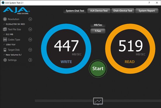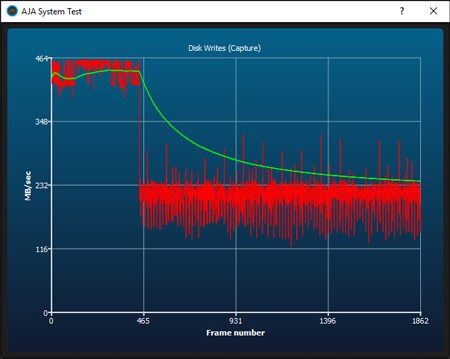 Nelle nostre prove questo particolare limite è emerso durante il test Aja System quando abbiamo impostato la scrittura di un singolo file da 64 Gbyte sul modello Ultra II con capacità di 480 Gbyte e quindi dotato di una nCache 2.0 ampia 20 Gbyte. Nel grafico che mostra le prestazioni in scrittura si osserva un repentino decadimento delle prestazioni in corrispondenza della soglia dei 16 Gbyte.