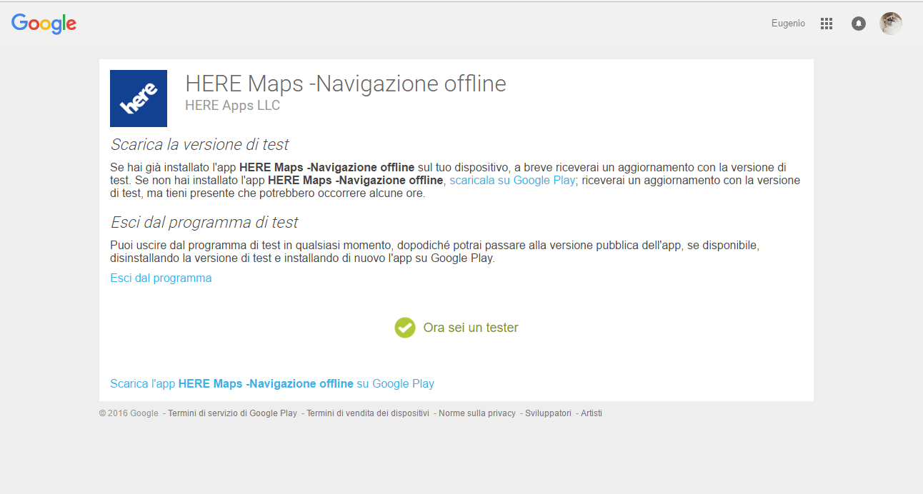 Per ottenere la versione beta dovete aderire al programma di test: se avete già installato la versione standard di Here Maps vi arriverà , in pochi secondi, l’aggiornamento.