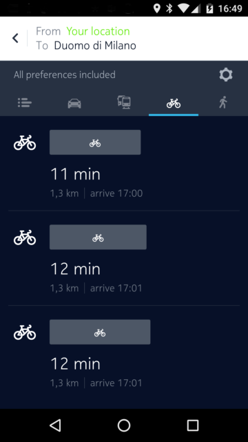 Come accennato in apertura, adesso Here Maps si aggiorna e, accanto ai percorsi in auto, con i mezzi pubblici o a piedi, sarà possibile impostare il percorso in bicicletta. Non è un dettaglio secondario: visto il successo del bike sharing (come BikeMi a Milano o analoghi servizi, in Italia e all’estero) potrebbe essere decisamente comodo avere un navigatore in grado di calcolare i percorsi “per le due ruote”. Anche considerando che, almeno in Italia, non ci sono applicazioni universali che forniscono questo tipo di opzione: giusto per citare un esempio, in Google Maps l’Italia non è inclusa nei paesi coperti con le indicazioni stradali per le biciclette.