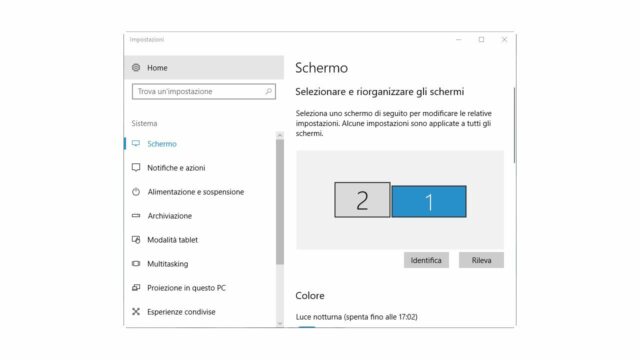 Il primo passaggio è scoprire la numerazione interna assegnata da Windows agli schermi collegati al sistema: fate clic destro in una zona vuota del desktop e selezionate Impostazioni schermo nel menu contestuale. Fate clic sul pulsante Identifica, nella sezione Selezionare e riorganizzare gli schermi, per visualizzare un riquadro nero con un numero su ciascuno schermo. Individuate il codice corrispondente allo schermo che volete impostare come default (figura 1).