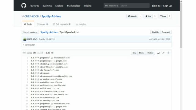 Fate clic sull’icona dell’estensione nella barra degli strumenti e poi su Apri il pannello di controllo. Aprite una nuova scheda e raggiungete la pagina https://github.com/CHEF-KOCH/Spotify-Ad-free, dove si trova una lista aggiornata dei server utilizzati da Spotify per la distribuzione degli spot pubblicitari. Fate clic sul file Spotifynulled.txt (figura 2) e poi sul pulsante Raw (per visualizzare l’elenco come un semplice file di puro testo) e copiate negli appunti l’indirizzo della pagina.
