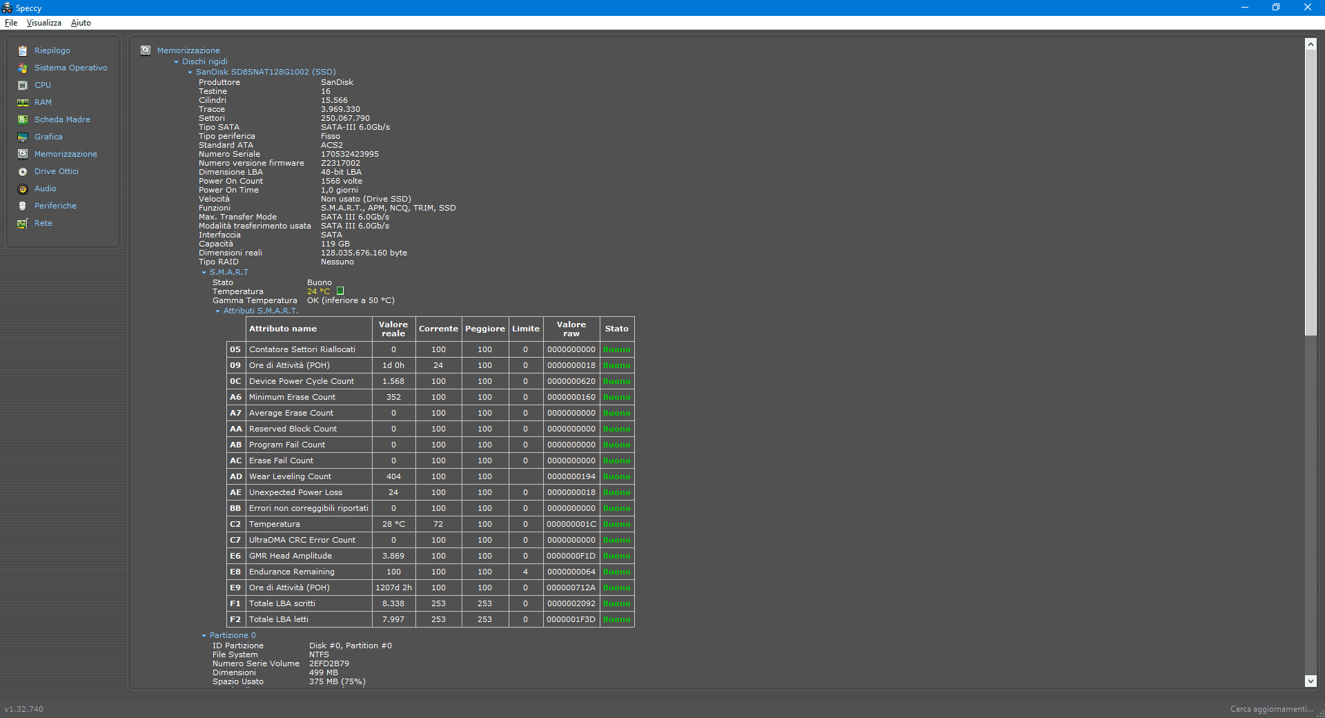 Molto utile è anche la possibilità di avere sempre sotto controllo le temperature dei diversi componenti (CPU, GPU, PCH della scheda madre, dischi fissi) grazie al supporto degli appositi sensori integrati nell’hardware, mentre particolarmente ricca di dettagli risulta la sezione dedicata alla “Memorizzazione” (in pratica SSD e HDD di sistema) con tanto di visualizzazione dello stato S.M.A.R.T. per la verifica della salute dei dischi.