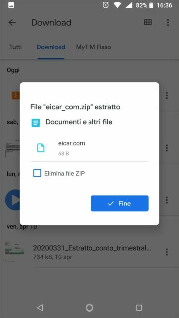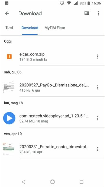Dalla schermata dei Download potremo quindi identificare il file ZIP che ci interessa toccando la voce corrispondente.