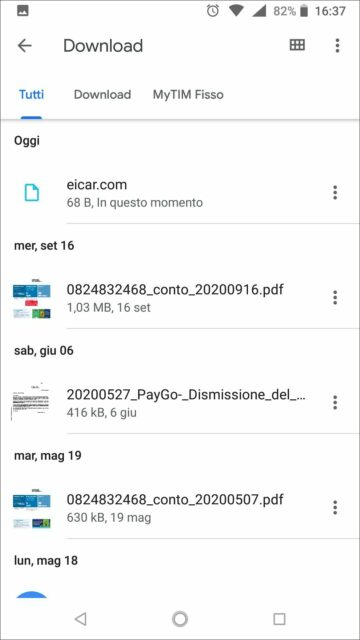 Ora potremo tornare alla scheda con l’elenco di “Tutti” i file scaricati e accedere (qualora possibile) ai file estratti dall’archivio ZIP.