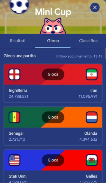 Su Google è arrivato Mini Cup, un minigioco nascosto tra la homepage di Google per celebrare l’inizio dei Mondiali. Infatti gli utenti potranno sbloccarlo e giocarci veramente, sfruttando la classica metodologia per attivare gli easter egg del motore di ricerca.