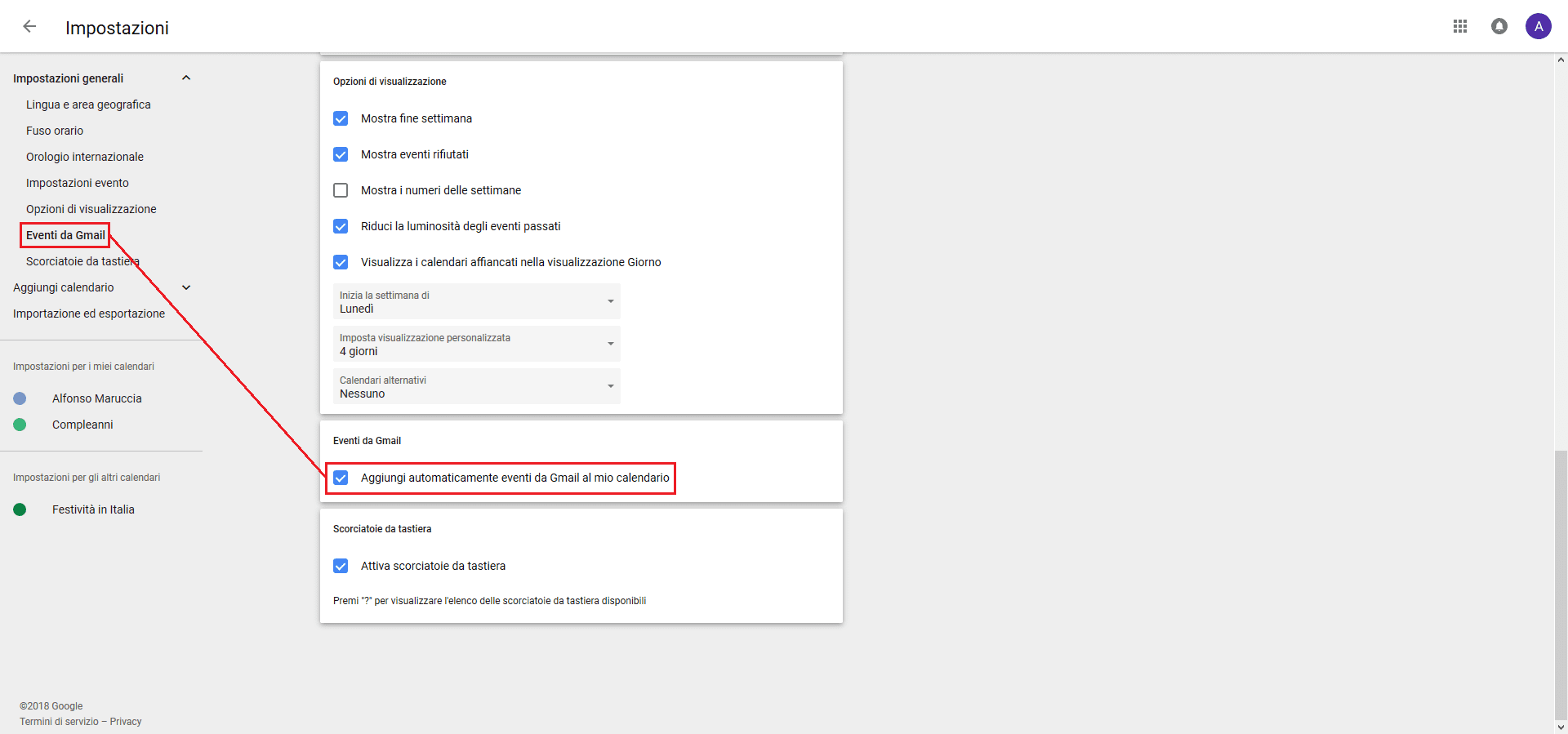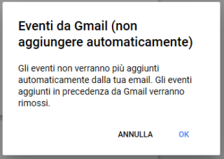 Per evitare di incappare nello stesso problema, dunque, è possibile modificare il (disgraziato) comportamento di Calendar accedendo alle Impostazioni del servizio (dall’icona “ingranaggio” presente in alto a destra), selezionando Eventi da Gmail dal menu a sinistra, togliendo la spunta all’opzione Aggiungi automaticamente eventi da Gmail al mio calendario e infine premendo su OK nel successivo messaggio pop-up.