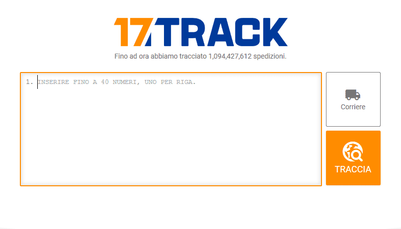 17TRACK è un servizio di tracciamento che può essere utilizzato per ovviare al problema tramite un sistema di tracking “centralizzato”: basta visitare la homepage del sito, copiaincollare i numeri delle diverse spedizioni (una per riga) fino a un massimo di quaranta e premere sul pulsante TRACCIA.