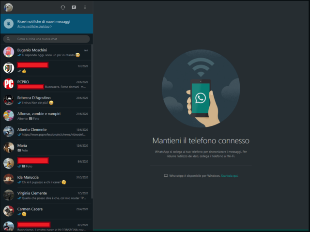 Per ri-abilitare il tema chiaro occorrerà ovviamente seguire a ritroso la procedura testé elencata. Con la nuova modalità scura per la applet Web, WhatsApp offre ora questo pratico meccanismo salva-vista su tutte le piattaforme supportate.
