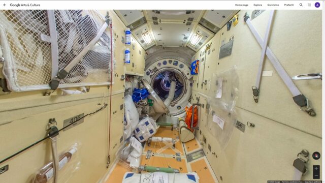 Il servizio di navigazione geolocalizzata di Mountain View ha da tempo sposato un approccio, come dire, meno terrestre e più “cosmico”, e tra gli ambienti mappati da Street View c’è appunto il budello interno che costituisce l’intricata struttura della ISS in cui si muovo gli astronauti a bordo della stazione.