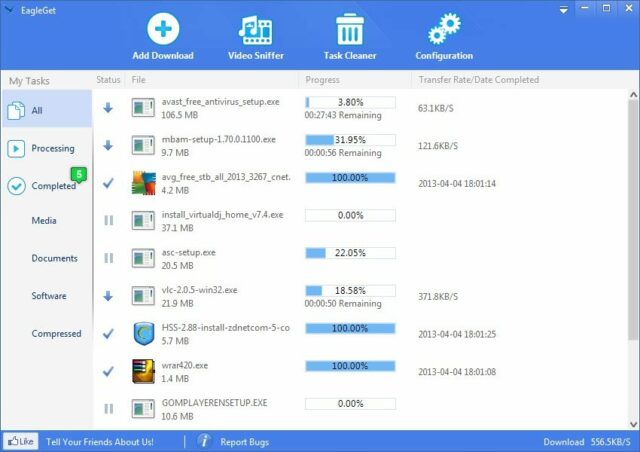 EagleGet offre il supporto multi-thread per accelerare il download sfruttando a pieno la banda disponibile.