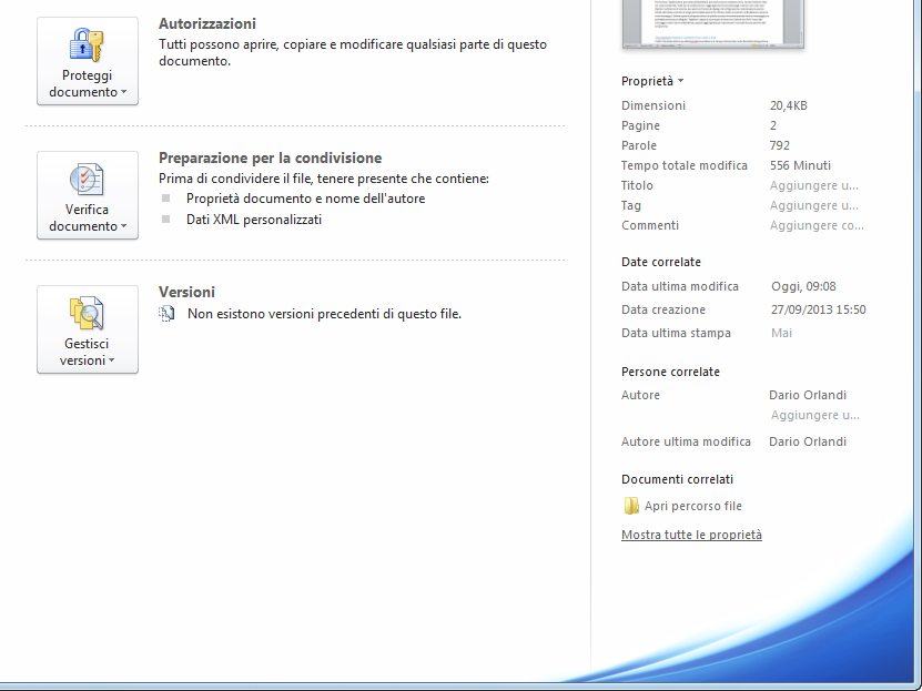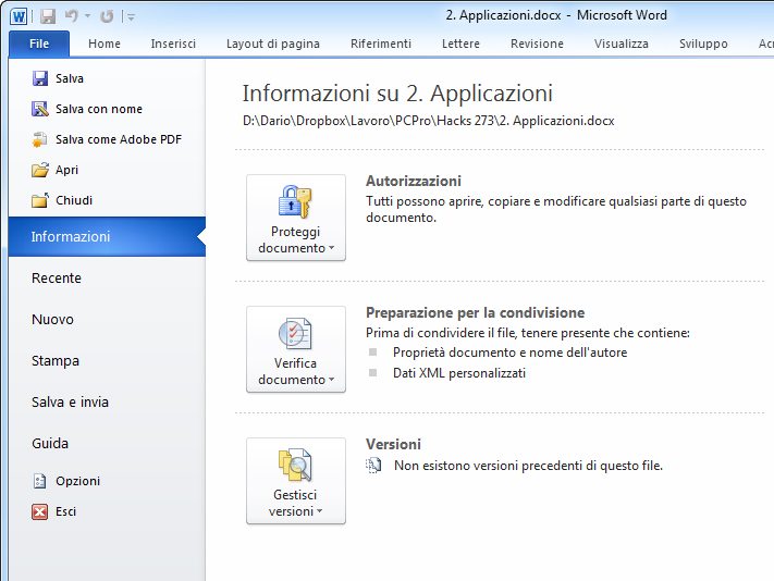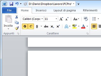 Quando si lavora con i documenti di Office può capitare di dimenticare quale sia il percorso nel file system del file aperto: le applicazioni, infatti, mostrano nella barra del titolo soltanto il nome del documento, ma non la sequenza delle cartelle. Per recuperare questa informazione si può aprire il backstage, facendo clic sulla scheda File della barra multifunzione: subito sotto al titolo della finestra si trova il percorso completo del file (figura A). Per raggiungerlo, invece, si può sfruttare il pulsante Apri percorso file, nella sezione Documenti correlati che si trova in basso a destra, sempre nel backstage (figura B). Esiste però anche un’altra soluzione, che permette di avere sempre sott’occhio il percorso completo del file senza dover cambiare contesto; ecco come attivarla.