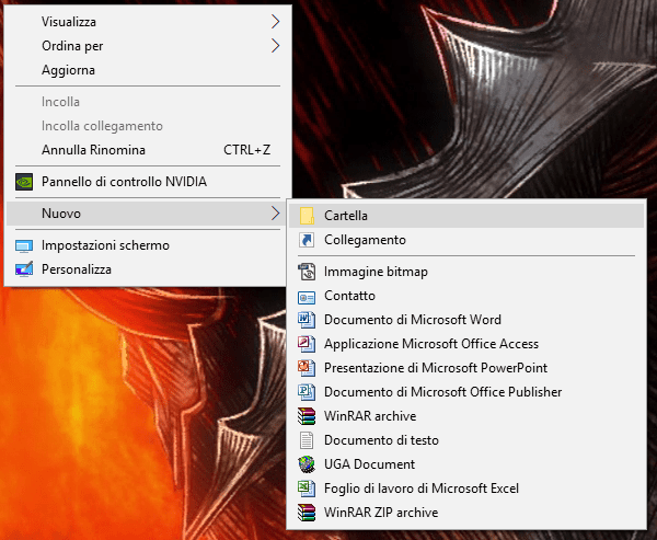 La procedura per creare una cartella invisibile è piuttosto essenziale e veloce: prima di tutto occorre creare una nuova cartella su disco o sul desktop, usando magari il Menu Contestuale del mouse.