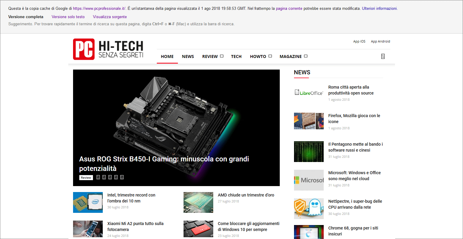 - Copia cache del sito Web di PC Professionale