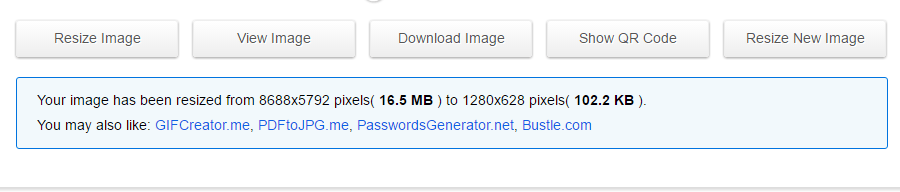 Cliccando sul tasto “Resize Image”, il software esegue sul file tutte le operazioni e mette a confronto le dimensioni (sia in pixel che in megabyte) del file originale con quelle del file elaborato. A questo punto potete aprirlo in un’altra scheda del vostro browser oppure fare il download diretto.